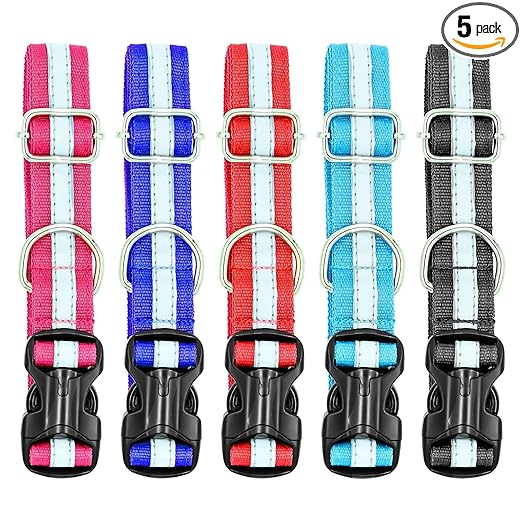 - Perfect Fit For Your Dogs – This 5 Pcs Reflective Dog Collar includes a dog collar for large dogs and a dog belt for small dogs, ensuring the perfect fit for your furry friend regardless of size.