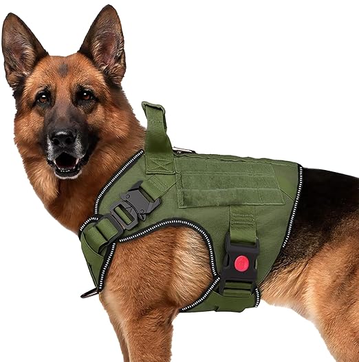 - 💎No Pull & Easy Control: This tactical dog belt has 2 strong metal D-rings. Use the back D-ring for casual walks and the front D-ring to control pulling. Soft padded with non-toxic mesh, the pulling pressure is evenly distributed across the body, preventing choking. To keep your dog safe while driving, there is a sturdy handle at the back to attach the seat belt.